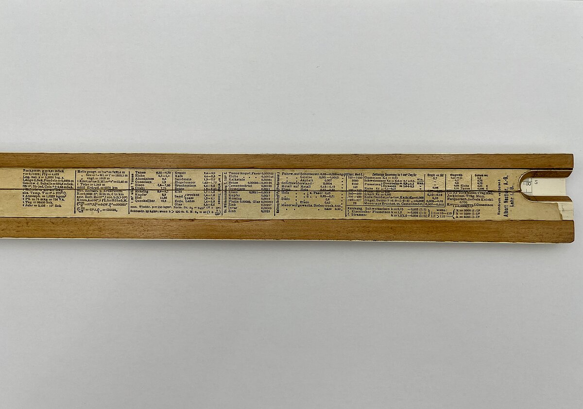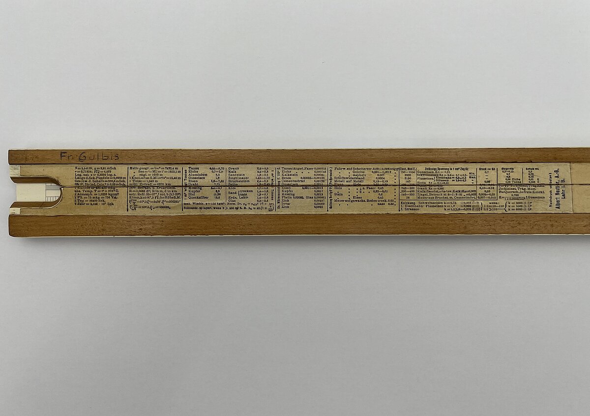 Friča Gulbja logarimiskais lineāls, LU Muzeja LU vēstures kolekcijas, LU Personību apakškolekcija, inv. Nr. LUV7599