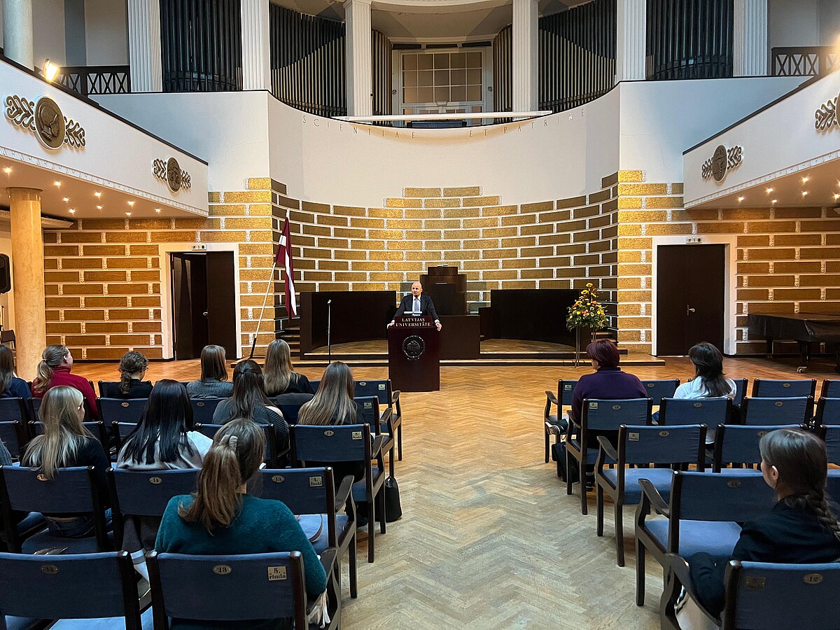 Noslēgumā notika saruna ar LU JF Studējošo pašpārvaldes pārstāvjiem un studentiem, kur jaunieši varēja uzdot jautājumus par studiju procesu, studentu dzīvi un iespējām iesaistīties fakultātes aktivitātēs.
